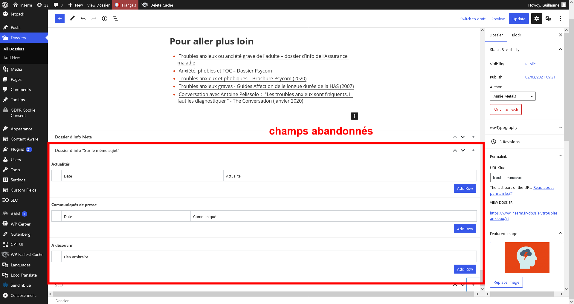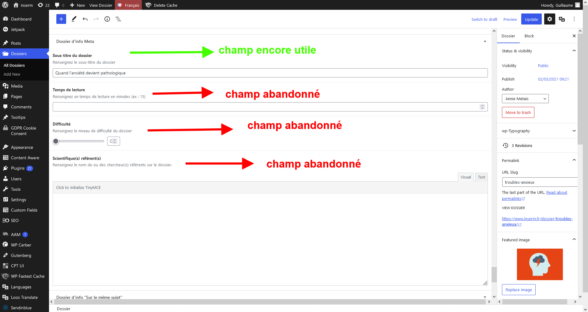 Au départ, le site devait utiliser de nombreux champs ACF pour la contribution, notamment :