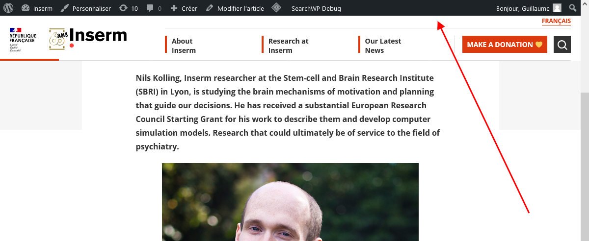 ouvertSur les SERP anglais, la barre d'admin ne s'affiche pas en mode connecté