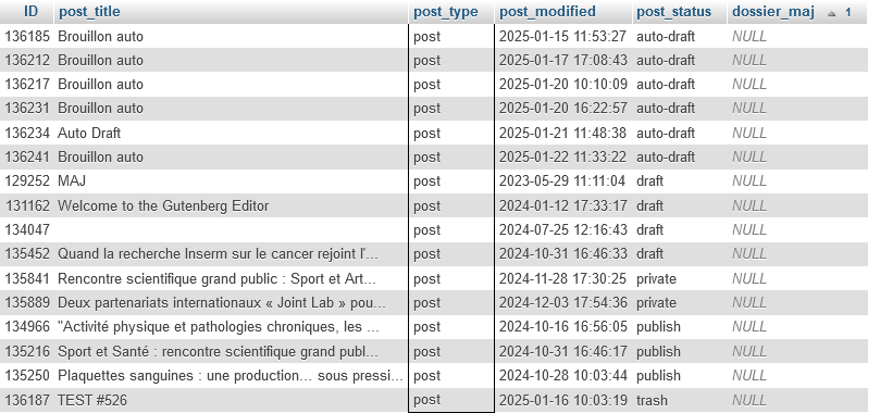 On sait qu'il n'y a que 3 posts published qui posent problèmes actuellement et qui ont une valeur NULL (les autres sont OK, vérifiés).