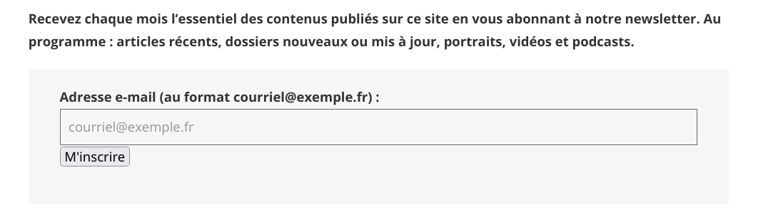 Les styles s'appuient sur une logique parent/enfants avec notamment :newsletter__wrapper pour le parentnewsletter__item pour les enfants